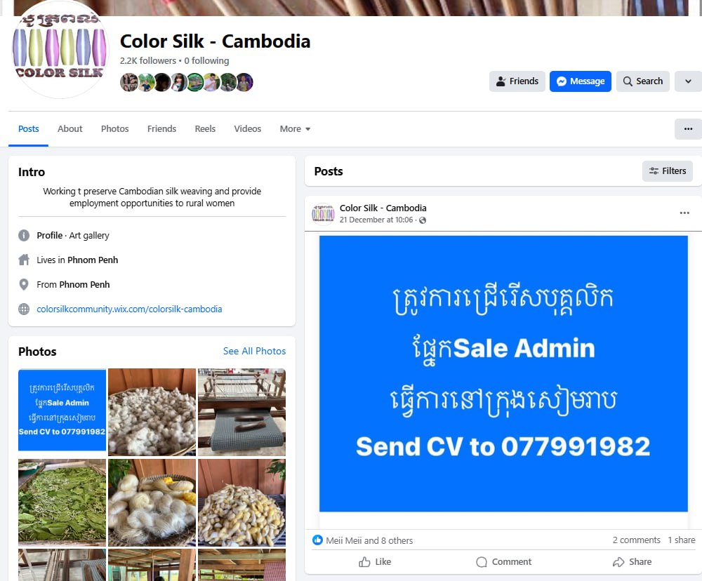To connect with more people in Cambodia, Color Silk decided to show the process behind making each product and share more on social media, especially Facebook and Instagram. But building local support will take time. Now, the business plans to use TikTok to share short and creative videos to reach a wider audience, both locally and globally.