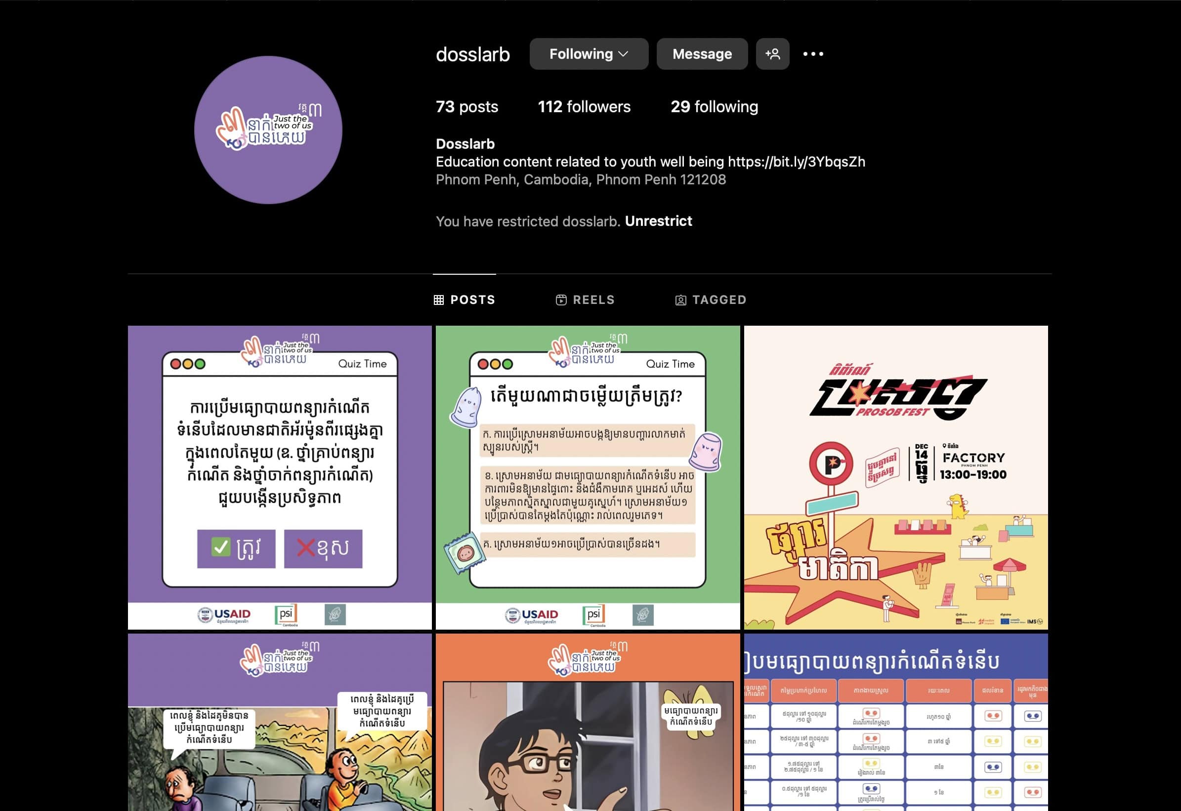 “The Dosslarb teams bring a wealth of talent as content creators, channeling their creativity into a platform dedicated to empowering youth. With a strong focus on multimedia content, they craft engaging and informative materials designs to promote sex education,” said Sopheakneath.