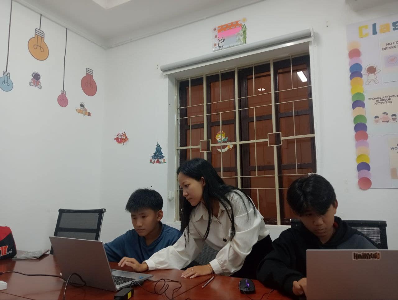 Writing code instructor Mrs. Sovandy of Teach for Kids Academy stated, „I have been teaching at this school for three years. Most of the students are six years and older, they learn how to write block code. The younger students more likely learn 3D design and printing.“